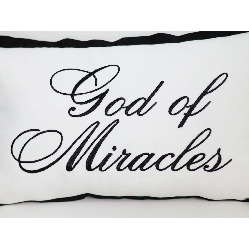 Introducing the "God of Miracle" Cushion by Grace Label—where elegance meets divine comfort. This luxurious cushion is crafted from soft white velvet, adorned with intricate black embroidery, creating a striking contrast that embodies sophistication and grace. Its plush padding ensures optimal comfort, making it a perfect addition to any living space. Elevate your home decor with this exquisite piece that reflects both style and serenity. Ideal for those seeking a touch of heavenly comfort in their everyday life.